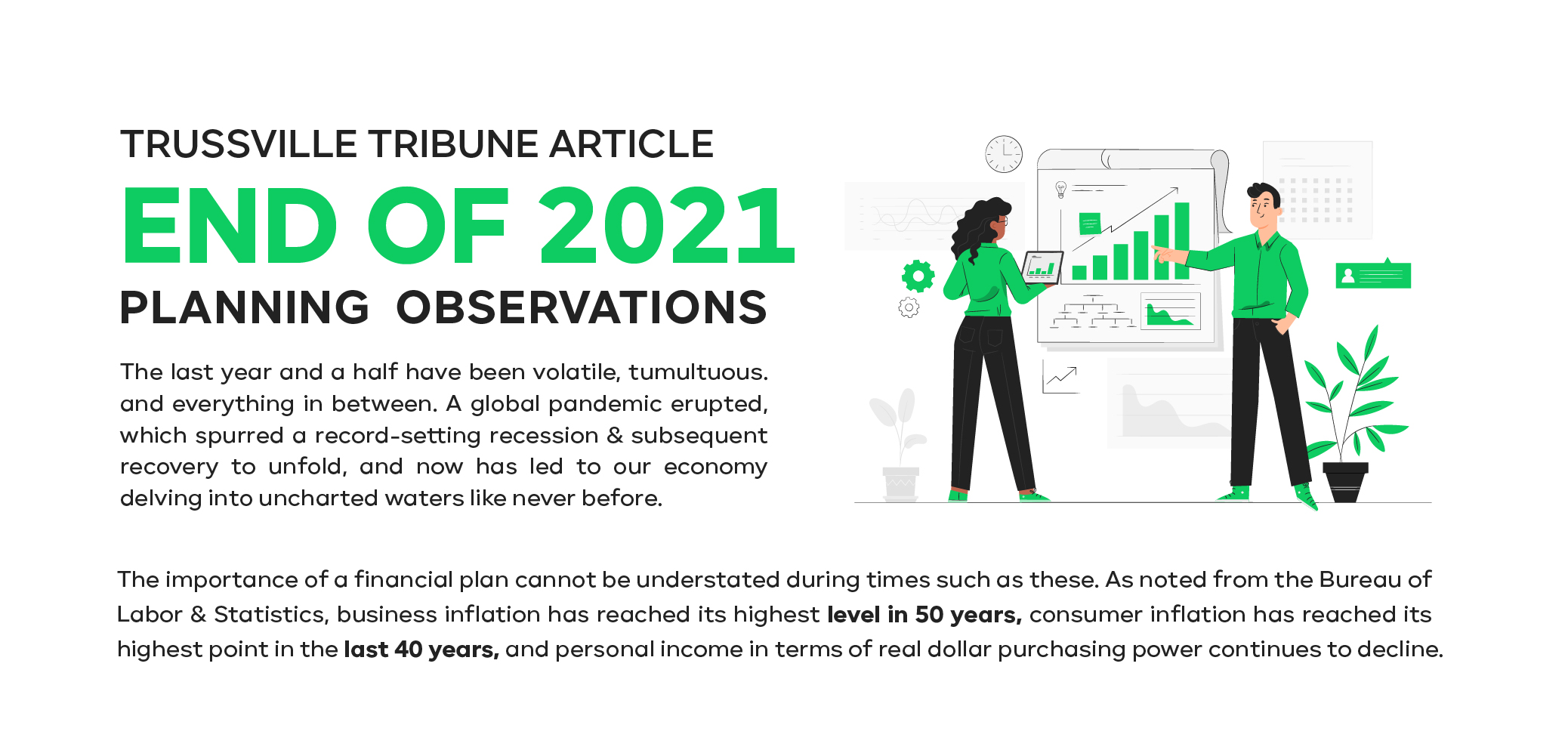 The point, simply, is this: there are many variables that could impact your financial future, including US inflation. Financial planning in Alabama is no different. With the economic landscape unfolding as it has, this is no time for an autopilot approach to financial planning or portfolio management. Undertaking an active, planning-driven approach that considers each strand of the economy and its subsequent connections will likely prove to be greatly beneficial in the years to come.