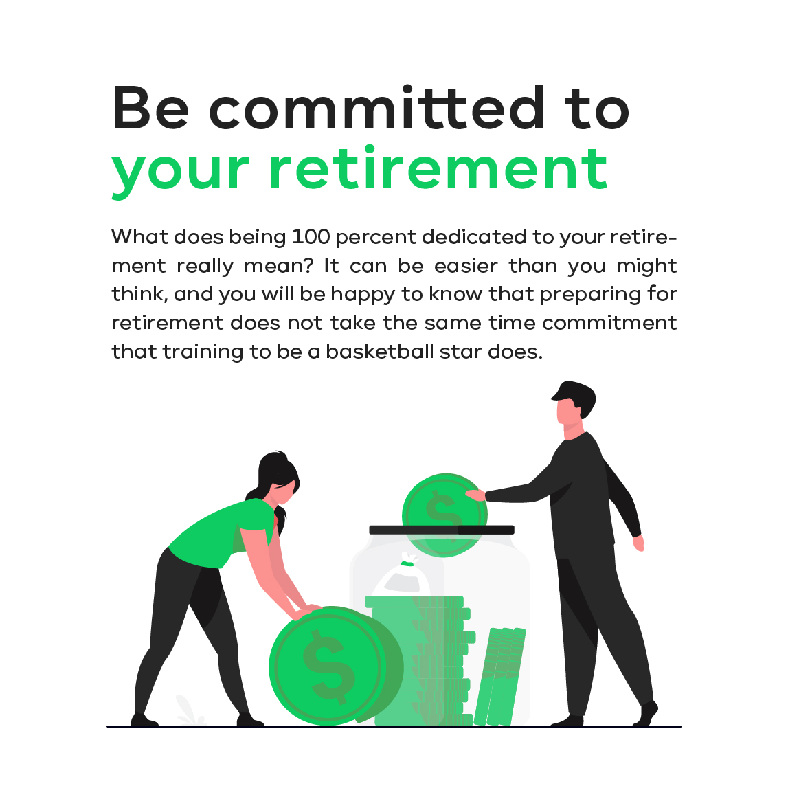 What does being 100 percent dedicated to your retirement really mean? It can be easier than you might think, and you will be happy to know that preparing for retirement does not take the same time commitment that training to be a basketball star does.