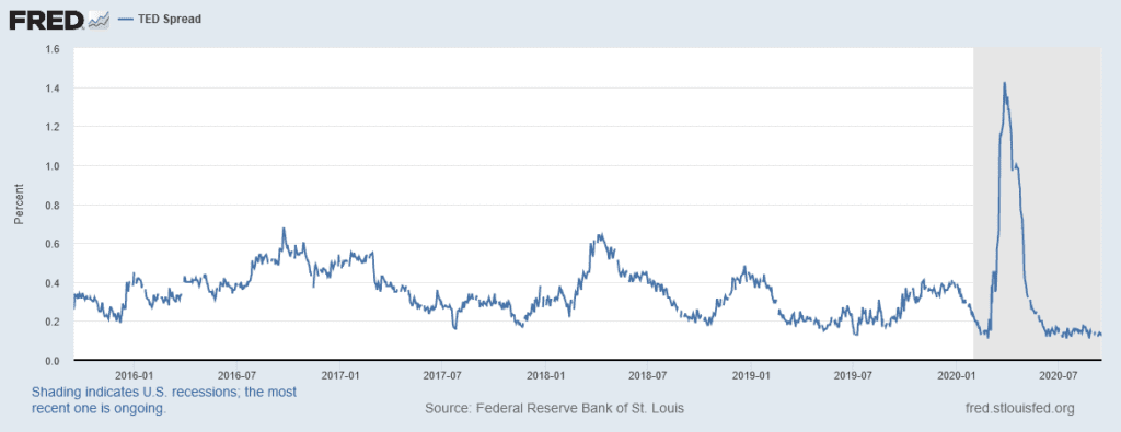 Following the election, the TED spread was halved by the end of 2016, and fell to 18 basis points by July of 2017.  In my opinion, if the bond market believed that we were two weeks away from potentially returning to a tax and fiscal policy of the previous Administration, then we would likely not see a 14 basis point TED spread today.  By extension, I also don’t believe that the Dow Jones Industrial Average would be above 28,000 either.  Markets have seemingly priced into themselves the assumption of robust growth, not tepid growth.  Markets are discounting mechanisms.  Given that observation, if the stock and bond markets sensed that a dramatic change in tax and fiscal policy was upon us, I believe we would have already observed that in the TED spread and market valuations.