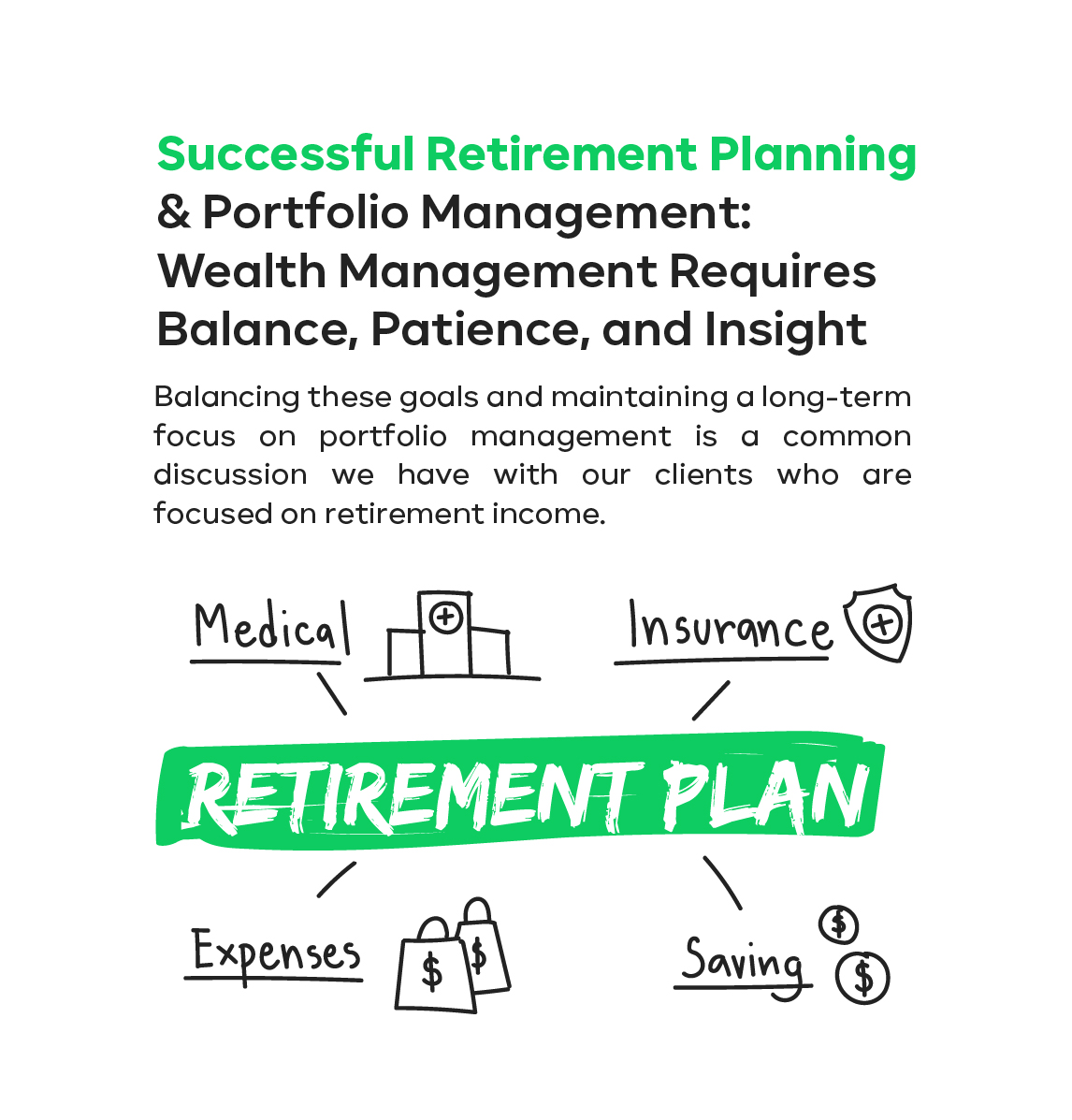Balancing these goals and maintaining a long-term focus on portfolio management is a common discussion we have with our clients who are focused on retirement income. We are a wealth management practice, and this means we focus on both what is happening in the markets on any given day as well as details like risk management strategies and practical day-to-day advice for personal wealth upkeep. Another way to think about us and our approach is this: