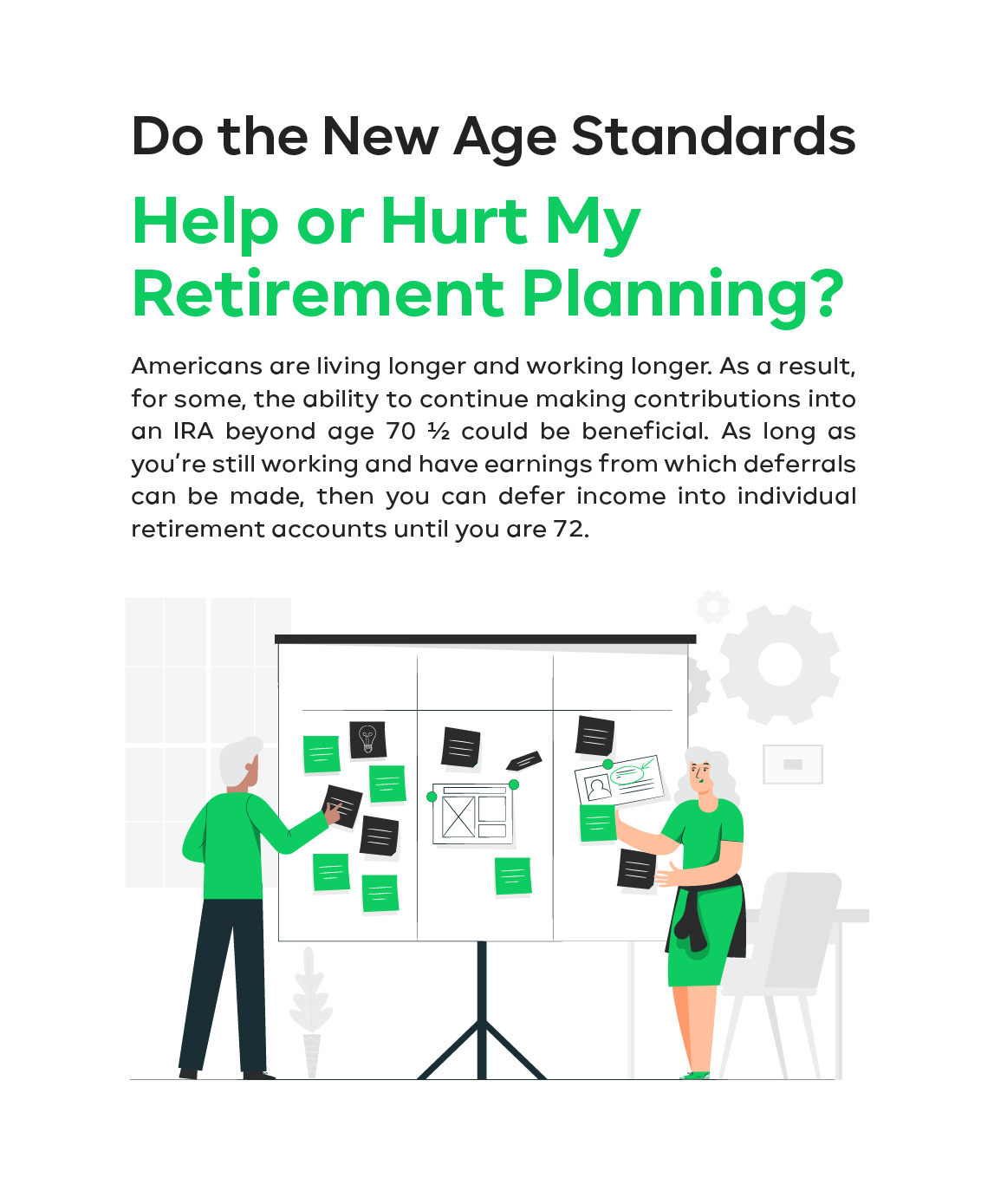 Americans are living longer and working longer. As a result, for some, the ability to continue making contributions into an IRA beyond age 70 ½ could be beneficial.