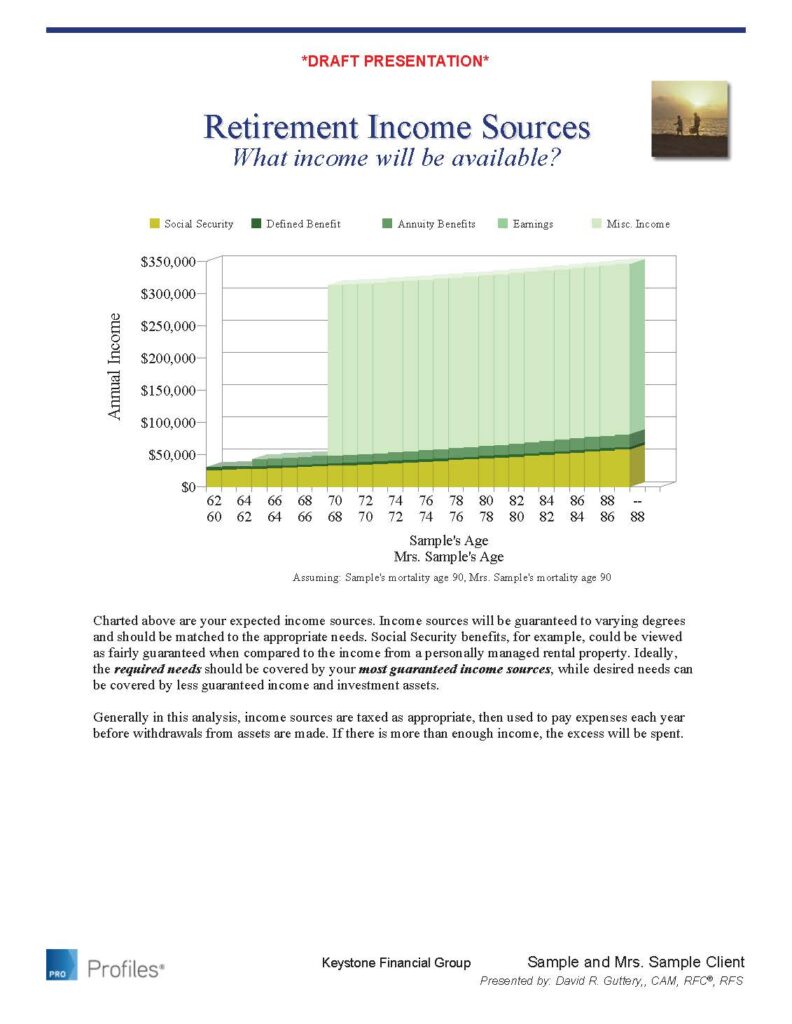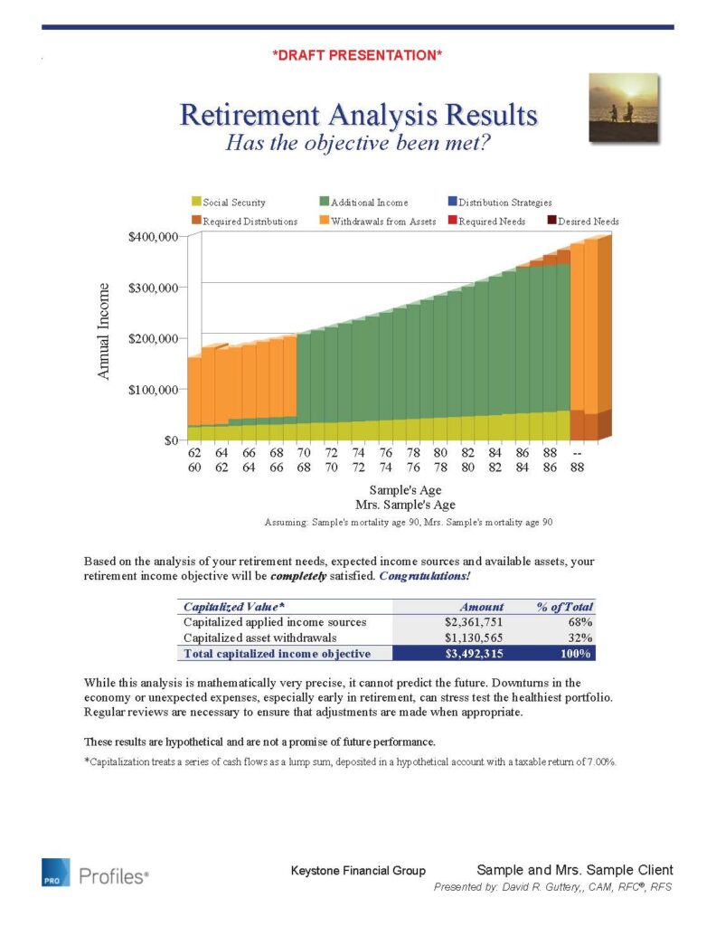 In terms of visual presentation, the aesthetic appearance of the plan will vary depending on the software used to produce it. We utilize Financial Profiles, which will be our point of reference below.